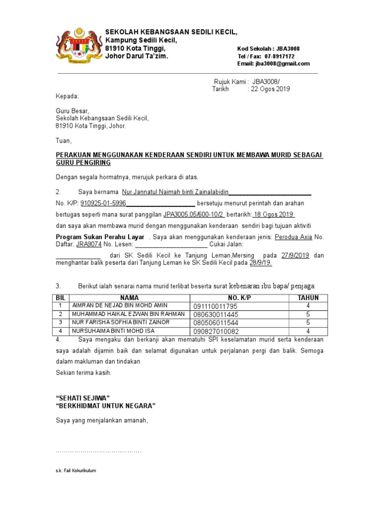 Prosedur bawa murid guna kenderaan sendiri cikgu ayu dot my. Memohon untuk menggunakan kenderaan. Surat kebenaran bawa kenderaan ini digunakan.
